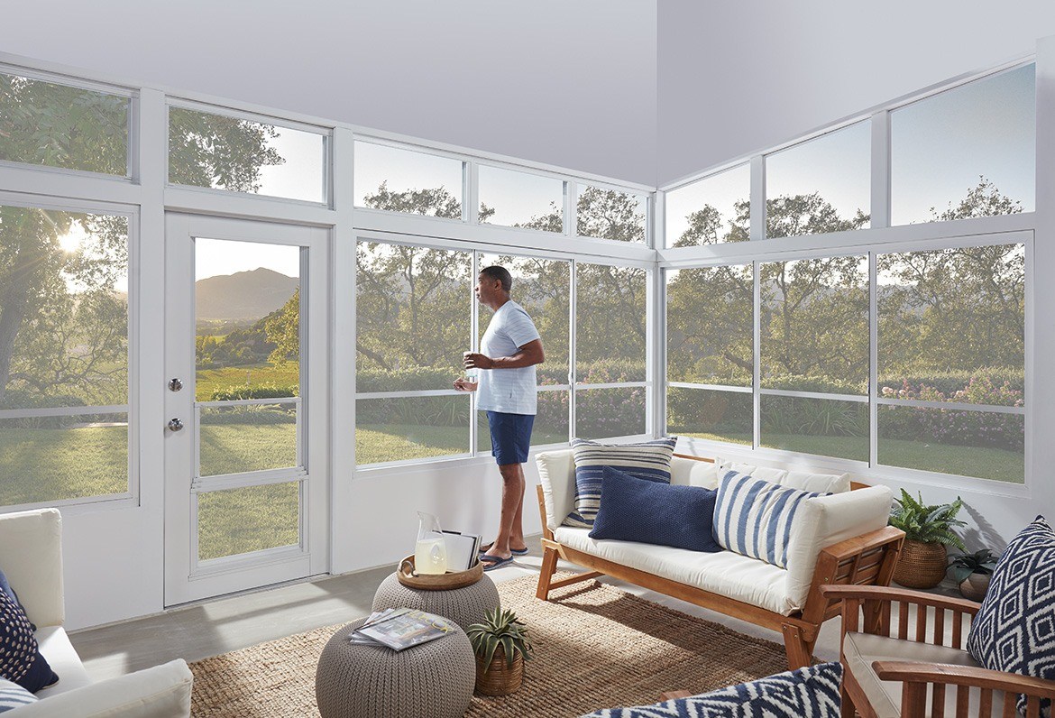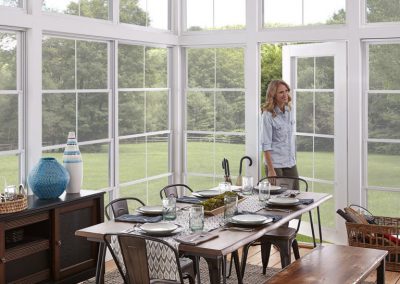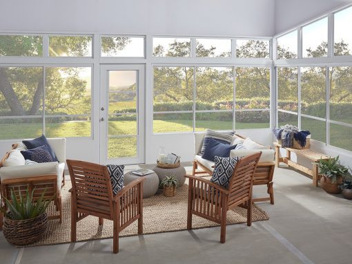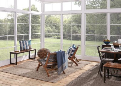 No matter how large or small, a patio or screened porch converted to a sunroom using EZE Breeze Vertical 4Track Vinyl Sliding Windows will add hours and hours of extra indoor living enjoyment. Here are a few examples to help you get inspired on your porch or patio conversion project!